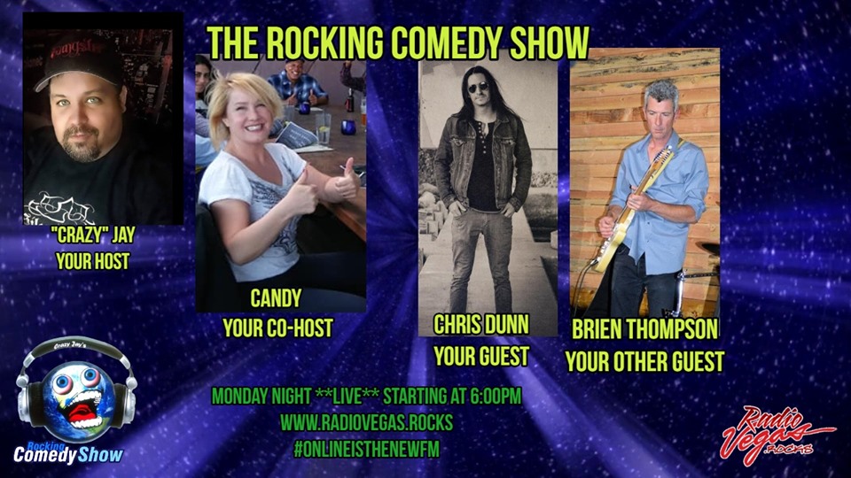 EP. 1,168 of The Rocking Comedy Show has a lot of new music for “NEW” Music Monday we have our good friend Brien Thompson stopping by and new comer Chris Dunn will be here as well. Candy Binnings is out with the flu but don’t worry we have “Frat Guy” Dan Doran and Chas Elstner…