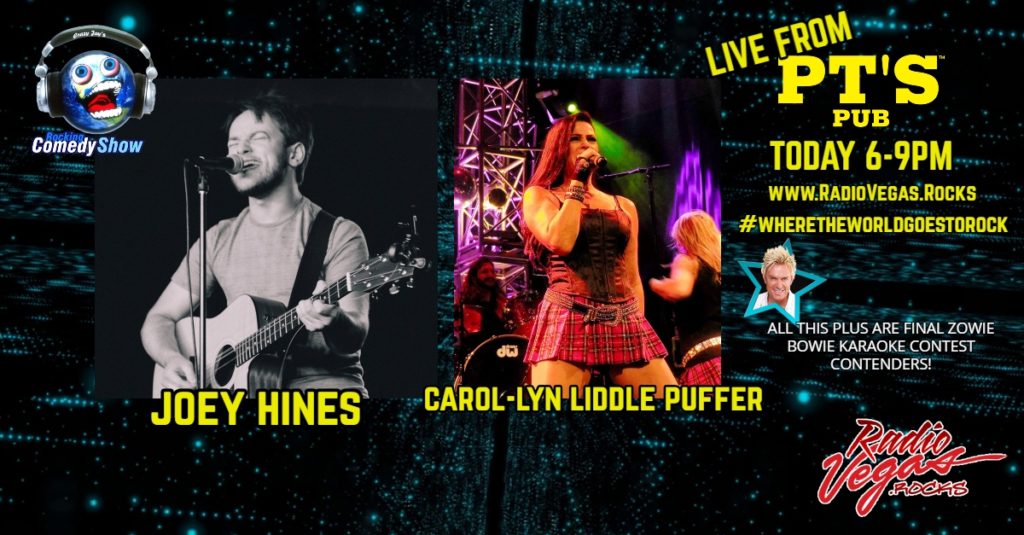 We can tell that the team at The Rocking Comedy Show Jordan Best Grim and Jetson and of course Crazy Jay are excited for sure today about the show because it’s coming to you **LIVE** from PT’s Pub on 3935 S. Durango but you can also listen like always at www.RadioVegas.Rocks. We have Joey Hines and Carol-Lyn Liddle-Puffer stopping by as our guests, we also have some of your favorite games like Romance Novel or Porn, Fake Books, and Hey I Think I Know That Song. Also on the show our final few karaoke singers for the Zowie Bowie Contest. This is going to be a lot of fun, join the party win some stuff, have some laughs!! We will see you all tonight at PT’s Pub 3935 S. Durango 6-9pm#WhereVegasGoesToDrink
